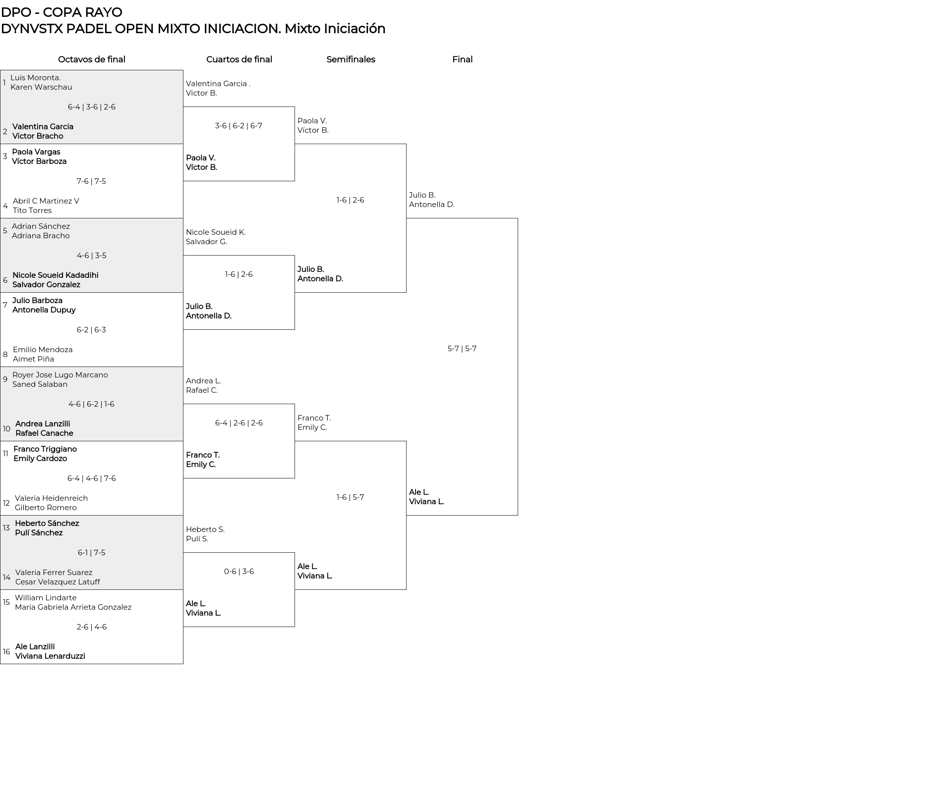Cuadro principal Mixto Iniciación