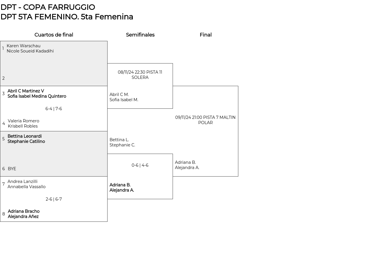 5ta Femenina . Desde 06/11/2024 16:00 hasta 09/11/2024 23:55