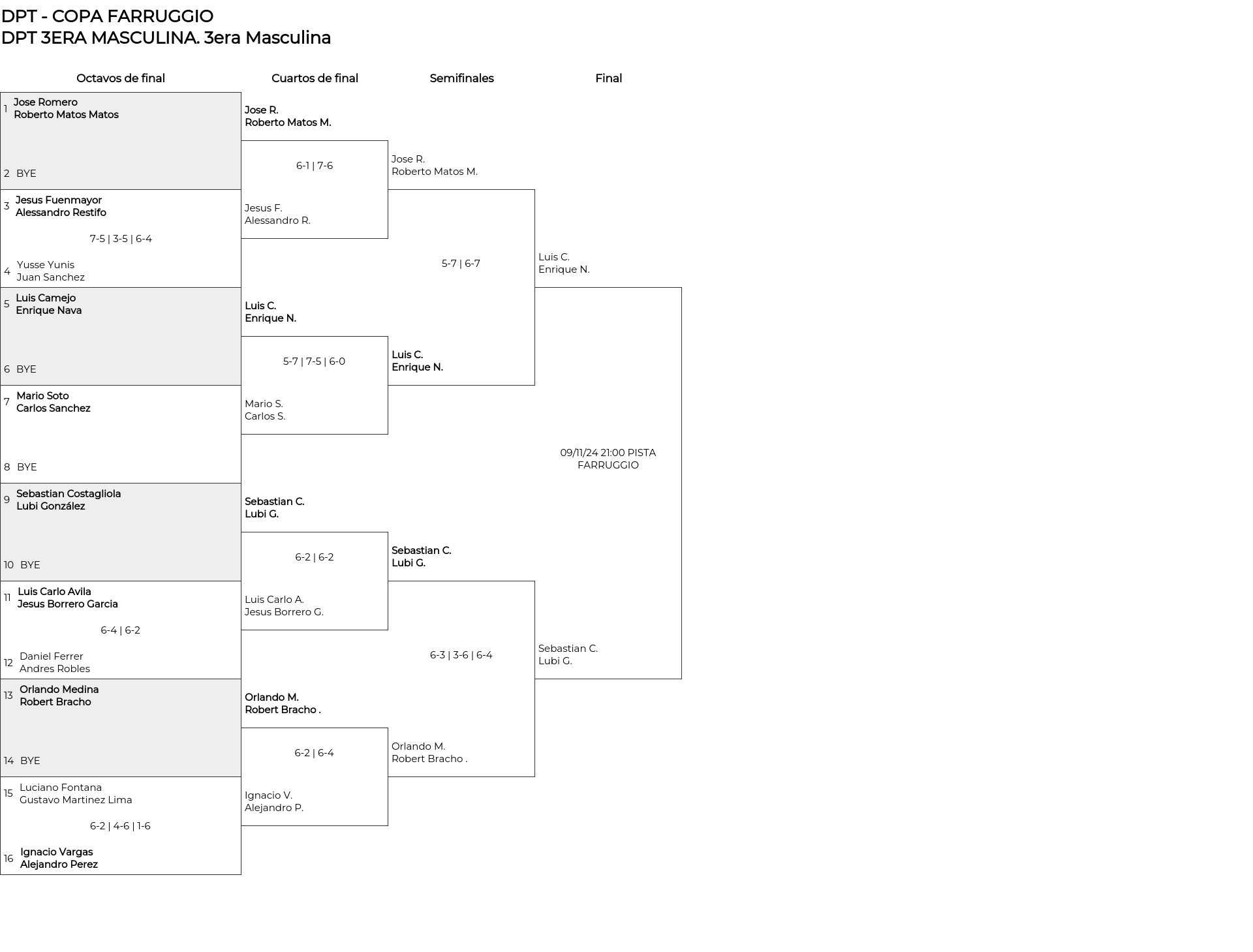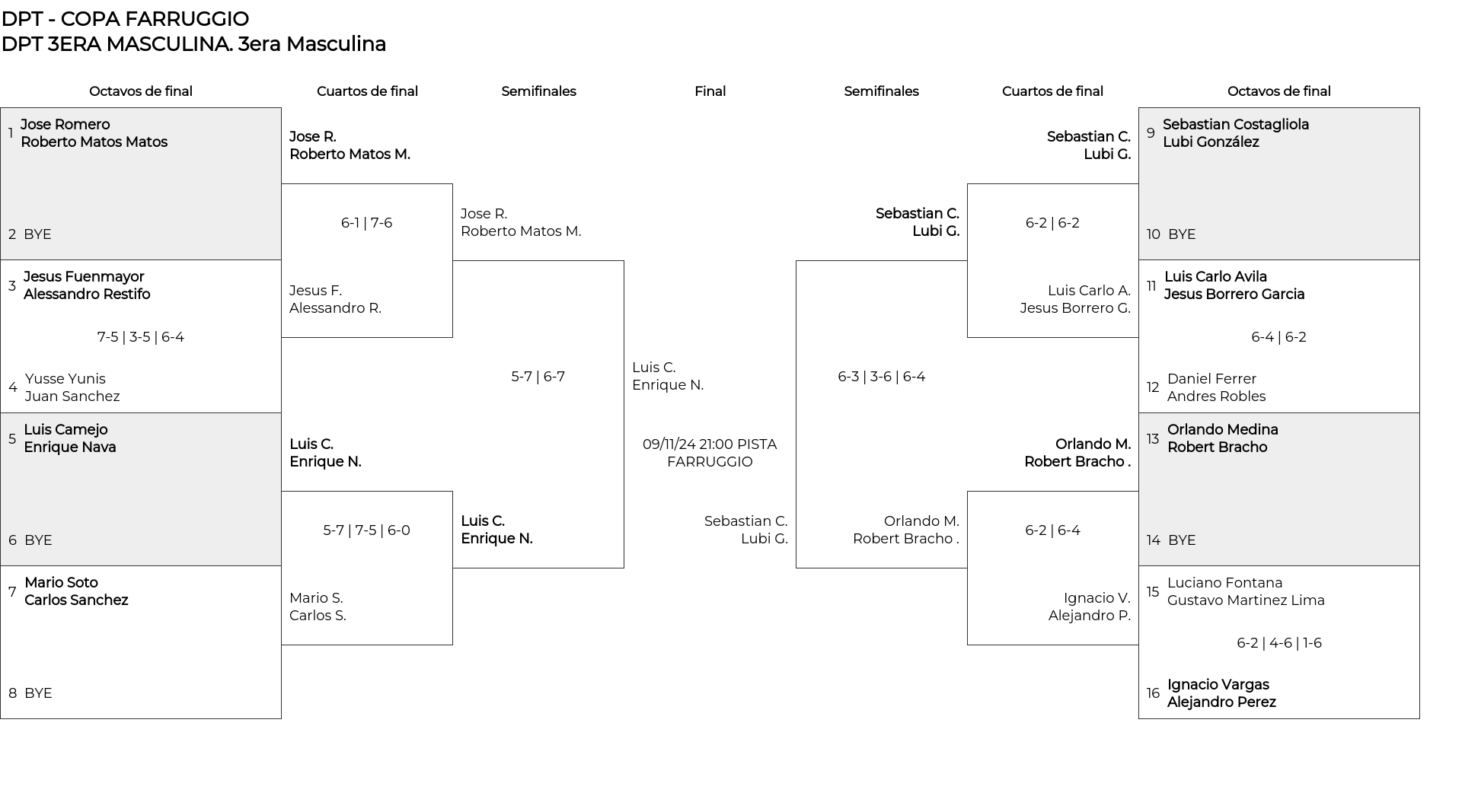 Cuadro principal 3era Masculina